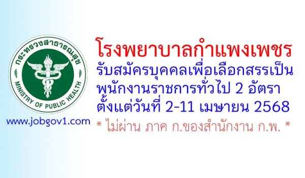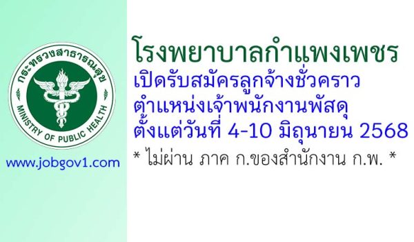 โรงพยาบาลกำแพงเพชร รับสมัครคัดเลือกบุคคลเพื่อจ้างเป็นลูกจ้างชั่วคราว 2 อัตรา ตั้งแต่วันที่ 10-14 พฤศจิกายน 2568
