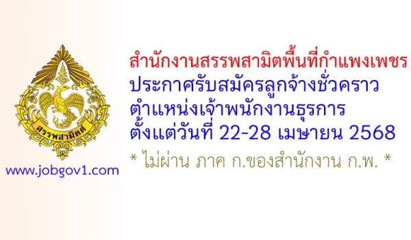 สำนักงานสรรพสามิตพื้นที่กำแพงเพชร รับสมัครพนักงานราชการทั่วไป ตำแหน่งพนักงานประจำสำนักงาน ตั้งแต่วันที่ 27-31 ตุลาคม 2568