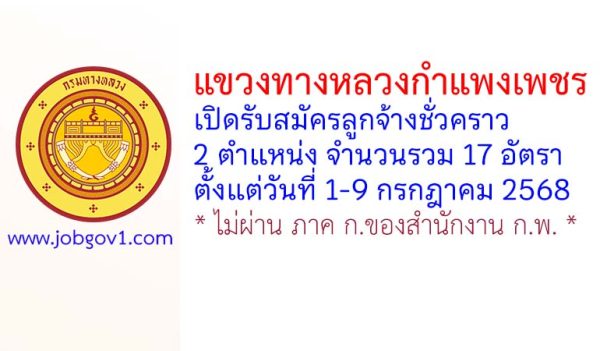 แขวงทางหลวงกำแพงเพชร รับสมัครลูกจ้างชั่วคราว ตำแหน่งคนงาน จำนวน 17 อัตรา ตั้งแต่วันที่ 18-28 พฤศจิกายน 2568