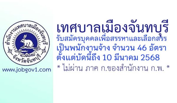 เทศบาลเมืองจันทบุรี รับสมัครบุคคลเพื่อสรรหาและเลือกสรรเป็นพนักงานจ้างทั่วไป 2 อัตรา ตั้งแต่วันที่ 13-21 พฤศจิกายน 2568