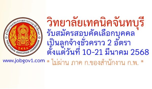 วิทยาลัยเทคนิคจันทบุรี รับสมัครพนักงานราชการทั่วไป ตำแหน่งพนักงานบริหารทั่วไป (ครู) กลุ่มวิชาช่างอิเล็กทรอนิกส์ ตั้งแต่วันที่ 12-18 พฤศจิกายน 2568