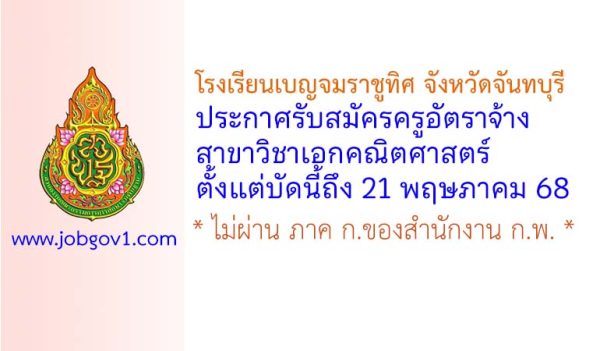 โรงเรียนเบญจมราชูทิศ จังหวัดจันทบุรี รับสมัครครูอัตราจ้าง กลุ่มวิชาเอกหรือสาขาวิชาการงานอาชีพ ตั้งแต่วันที่ 5-13 พฤศจิกายน 2568