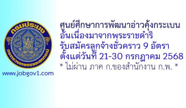 ศูนย์ศึกษาการพัฒนาอ่าวคุ้งกระเบนอันเนื่องมาจากพระราชดำริ รับสมัครลูกจ้างชั่วคราว ตำแหน่งนักวิชาการเกษตร ตั้งแต่วันที่ 15-19 กันยายน 2568