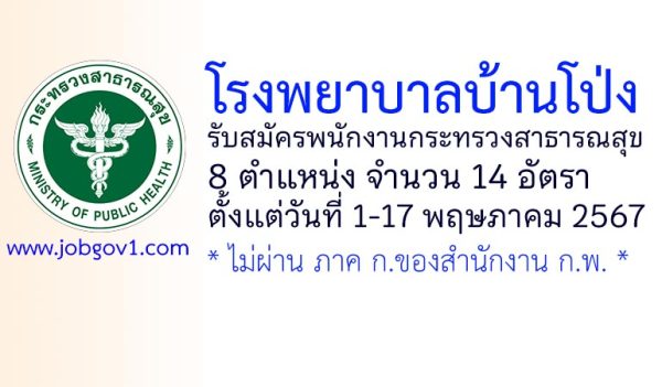 โรงพยาบาลบ้านโป่ง รับสมัครพนักงานกระทรวงสาธารณสุขทั่วไป 14 อัตรา ตั้งแต่วันที่ 1-17 พฤษภาคม 2567