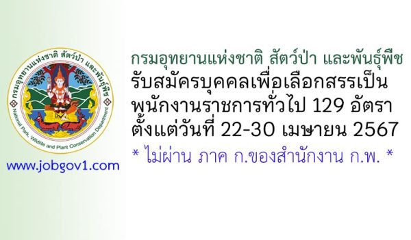 กรมอุทยานแห่งชาติ สัตว์ป่า และพันธุ์พืช รับสมัครบุคคลเพื่อเลือกสรรเป็นพนักงานราชการทั่วไป 129 อัตรา ตั้งแต่วันที่ 22-30 เมษายน 2567