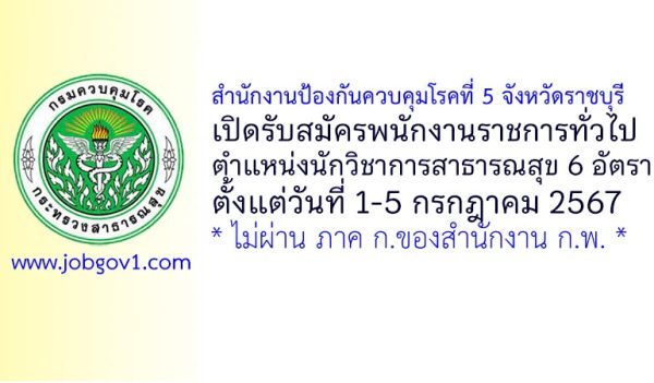 สำนักงานป้องกันควบคุมโรคที่ 5 จังหวัดราชบุรี รับสมัครพนักงานราชการทั่วไป ตำแหน่งนักวิชาการสาธารณสุข 6 อัตรา ตั้งแต่วันที่ 1-5 กรกฎาคม 2567