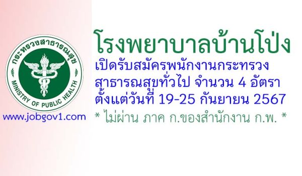 โรงพยาบาลบ้านโป่ง รับสมัครพนักงานกระทรวงสาธารณสุขทั่วไป 4 อัตรา ตั้งแต่วันที่ 19-25 กันยายน 2567