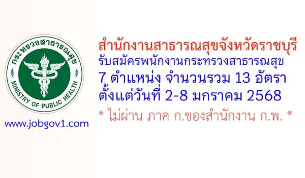 สำนักงานสาธารณสุขจังหวัดราชบุรี รับสมัครพนักงานกระทรวงสาธารณสุขทั่วไป 13 อัตรา ตั้งแต่วันที่ 2-8 มกราคม 2568