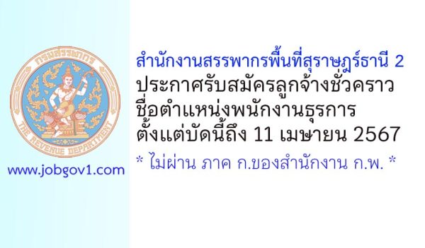 สำนักงานสรรพากรพื้นที่สุราษฎร์ธานี 2 รับสมัครลูกจ้างชั่วคราว ตำแหน่งเจ้าพนักงานธุรการ