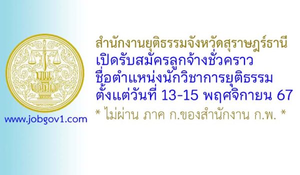สำนักงานยุติธรรมจังหวัดสุราษฎร์ธานี รับสมัครลูกจ้างชั่วคราว ตำแหน่งนักวิชาการยุติธรรม ตั้งแต่วันที่ 13-15 พฤศจิกายน 2567