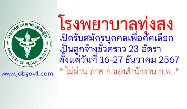โรงพยาบาลทุ่งสง รับสมัครลูกจ้างชั่วคราว 26 อัตรา ตั้งแต่บัดนี้ถึง 22 ธันวาคม 2568
