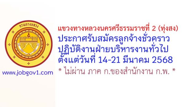 แขวงทางหลวงนครศรีธรรมราชที่ 2 (ทุ่งสง) รับสมัครลูกจ้างชั่วคราว ปฏิบัติงานฝ่ายบริหารงานทั่วไป