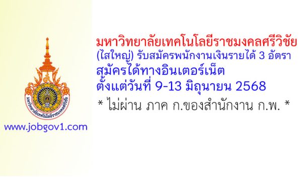 มหาวิทยาลัยเทคโนโลยีราชมงคลศรีวิชัย (ไสใหญ่) รับสมัครพนักงานเงินรายได้ 3 อัตรา ตั้งแต่วันที่ 9-13 มิถุนายน 2568