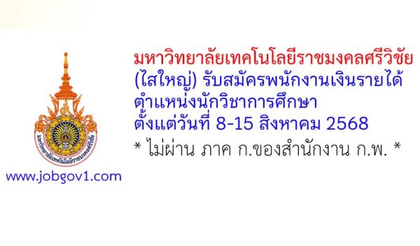 มหาวิทยาลัยเทคโนโลยีราชมงคลศรีวิชัย (ไสใหญ่) รับสมัครพนักงานเงินรายได้ ตำแหน่งนักวิชาการศึกษา