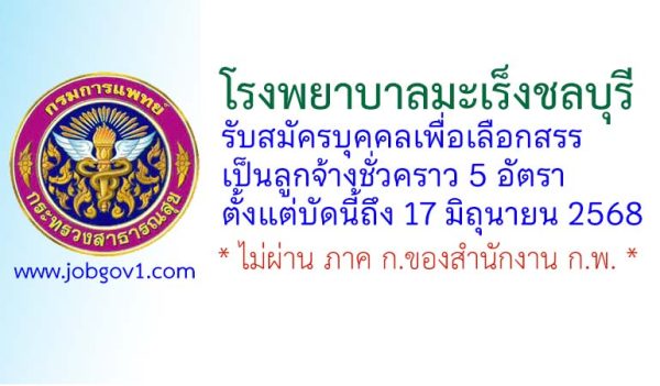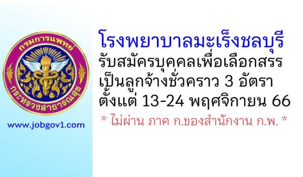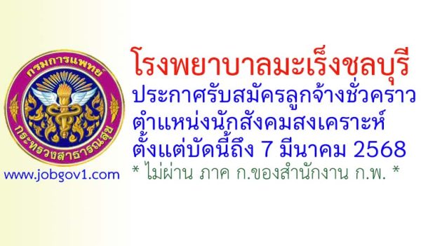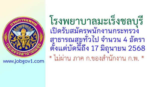 โรงพยาบาลมะเร็งชลบุรี รับสมัครบุคคลเพื่อเลือกสรรเป็นพนักงานกระทรวงสาธารณสุขทั่วไป 2 อัตรา ตั้งแต่วันที่ 3-14 พฤศจิกายน 2568