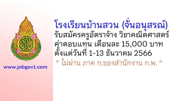 โรงเรียนบ้านสวน (จั่นอนุสรณ์) รับสมัครครูอัตราจ้าง วิชาเอกคณิตศาสตร์ ตั้งแต่บัดนี้ถึง 3 ตุลาคม 2568