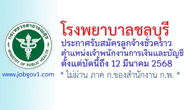 โรงพยาบาลชลบุรี รับสมัครลูกจ้างชั่วคราว ตำแหน่งเจ้าพนักงานการเงินและบัญชี ตั้งแต่บัดนี้ถึง 26 พฤศจิกายน 2568