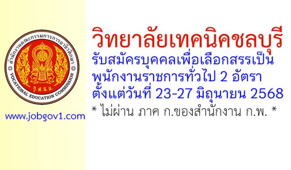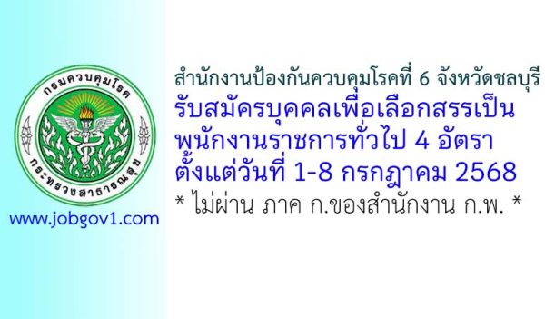 สำนักงานสาธารณสุขจังหวัดชลบุรี รับสมัครบุคคลเพื่อเลือกสรรเป็นพนักงานราชการทั่วไป 6 อัตรา ตั้งแต่วันที่ 27-31 ตุลาคม 2568