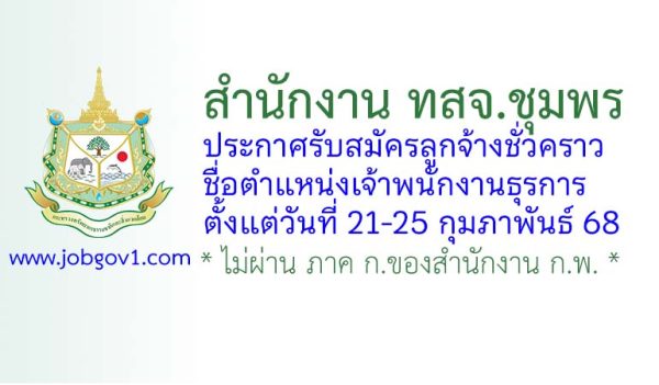 สำนักงาน ทสจ.ชุมพร รับสมัครลูกจ้างชั่วคราว ตำแหน่งนิติกร ตั้งแต่วันที่ 17-22 กันยายน 2568