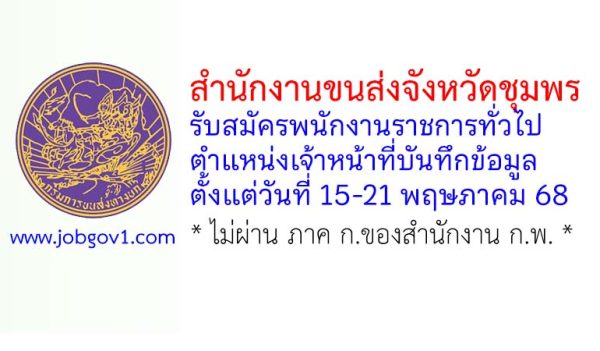 สำนักงานขนส่งจังหวัดชุมพร รับสมัครพนักงานราชการทั่วไป ตำแหน่งเจ้าหน้าที่ระบบงานคอมพิวเตอร์ ตั้งแต่วันที่ 18-24 กันยายน 2568