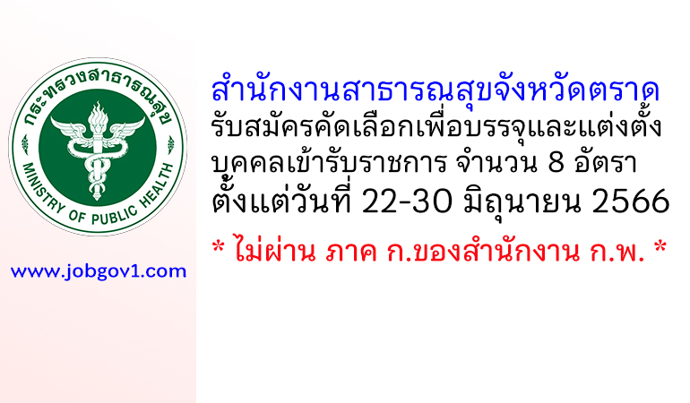 สำนักงานสาธารณสุขจังหวัดตราด รับสมัครบุคคลเพื่อเลือกสรรเป็นพนักงานราชการทั่วไป 4 อัตรา