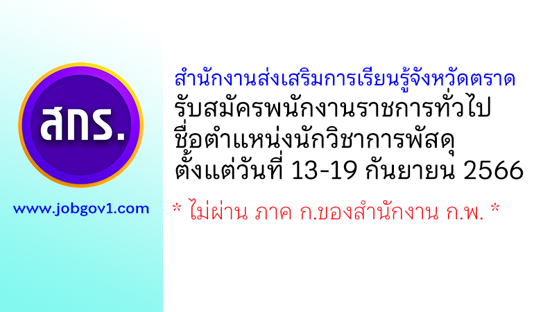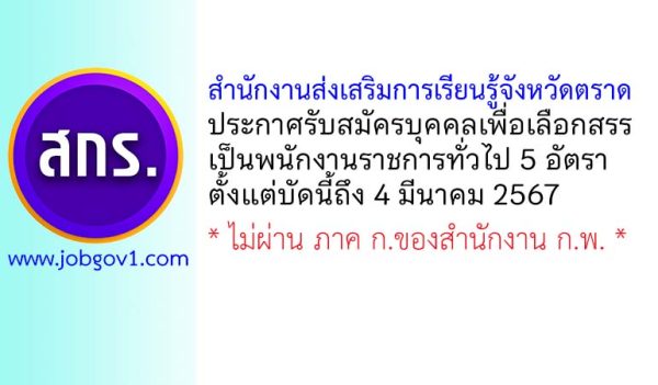 สำนักงานส่งเสริมการเรียนรู้ประจำจังหวัดตราด รับสมัครพนักงานราชการทั่วไป ตำแหน่งเจ้าพนักงานธุรการ