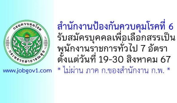 สำนักงานป้องกันควบคุมโรคที่ 6 จังหวัดชลบุรี รับสมัครบุคคลเพื่อเลือกสรรเป็นพนักงานราชการทั่วไป 4 อัตรา ตั้งแต่วันที่ 1-8 กรกฎาคม 2568