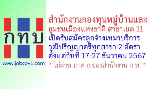 สำนักงานกองทุนหมู่บ้านและชุมชนเมืองแห่งชาติ สาขาเขต 11 รับสมัครลูกจ้างเหมาบริการ 2 อัตรา ตั้งแต่วันที่ 17-27 ธันวาคม 2567