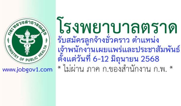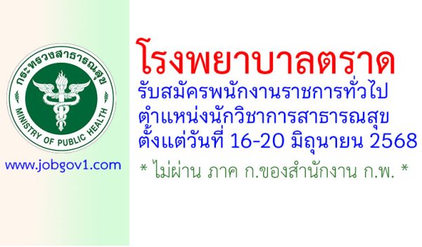 โรงพยาบาลตราด รับสมัครพนักงานราชการทั่วไป ตำแหน่งนักวิชาการสาธารณสุข ตั้งแต่วันที่ 16-20 มิถุนายน 2568