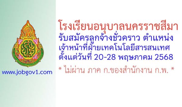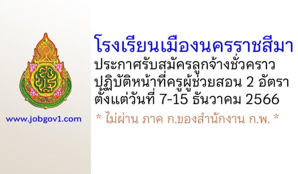 โรงเรียนเมืองนครราชสีมา รับสมัครลูกจ้างชั่วคราว ปฏิบัติหน้าที่เจ้าหน้าที่ธุรการฝ่ายบุคคล ตั้งแต่วันที่ 8-17 ธันวาคม 2568