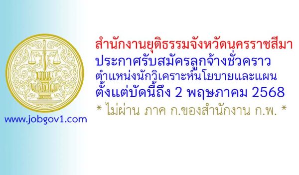 สำนักงาน พมจ.นครราชสีมา รับสมัครบุคคลเพื่อเลือกสรรเป็นพนักงานกองทุน ตำแหน่งนิติกร ตั้งแต่วันที่ 17-21 พฤศจิกายน 2568