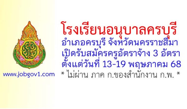 โรงพยาบาลครบุรี จังหวัดนครราชสีมา รับสมัครลูกจ้างชั่วคราว 3 อัตรา ตั้งแต่วันที่ 10-19 พฤศจิกายน 2568