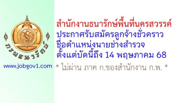 สำนักงานธนารักษ์พื้นที่นครสวรรค์ รับสมัครลูกจ้างชั่วคราว ตำแหน่งนายช่างสำรวจ ตั้งแต่วันที่ 11-19 ธันวาคม 2568