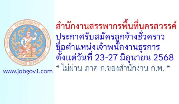 สำนักงานสหกรณ์จังหวัดนครสวรรค์ รับสมัครพนักงานจ้างเหมาบริการ ตำแหน่งนักวิชาการสหกรณ์ ตั้งแต่บัดนี้ถึง 7 พฤศจิกายน 2568