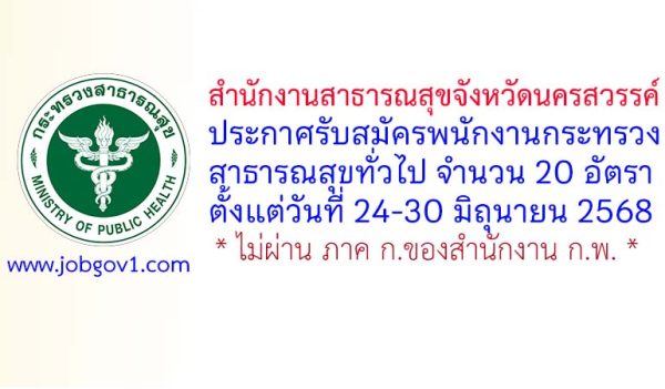 สำนักงานสาธารณสุขจังหวัดนครสวรรค์ รับสมัครพนักงานกระทรวงสาธารณสุขทั่วไป 34 อัตรา ตั้งแต่วันที่ 15-19 ธันวาคม 2568