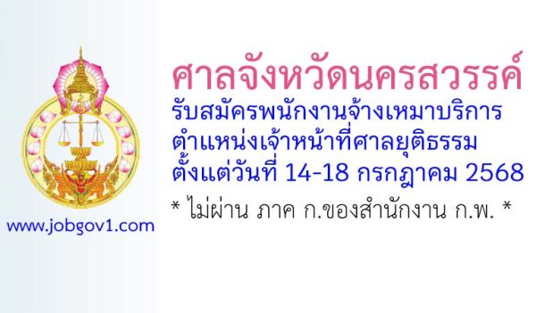 ศาลจังหวัดนครสวรรค์ รับสมัครพนักงานจ้างเหมาบริการ ตำแหน่งนักจิตวิทยา ตั้งแต่วันที่ 6-24 พฤศจิกายน 2568