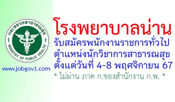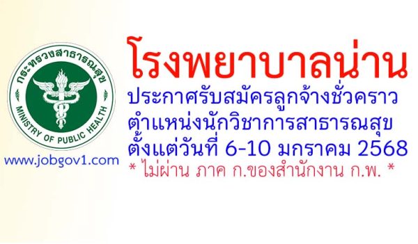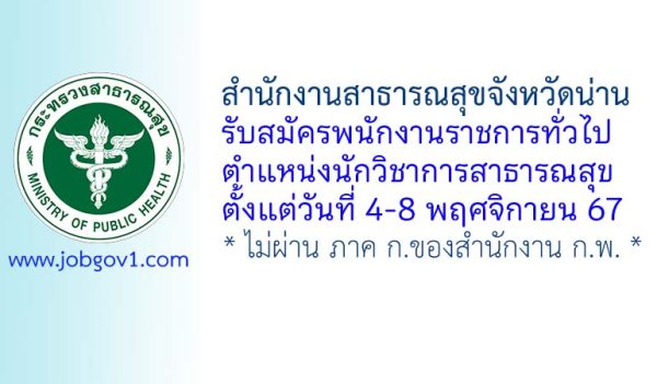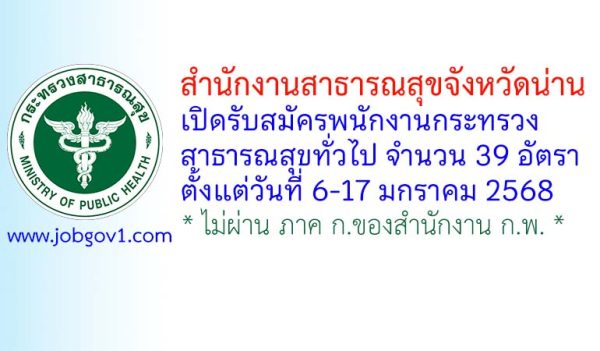 สำนักงานสาธารณสุขจังหวัดน่าน รับสมัครพนักงานกระทรวงสาธารณสุขทั่วไป 26 อัตรา ตั้งแต่วันที่ 20-29 สิงหาคม 2568