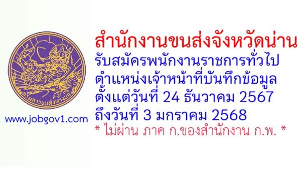 สำนักงานสถิติจังหวัดน่าน รับสมัครพนักงานราชการทั่วไป ตำแหน่งผู้ช่วยพนักงานสถิติ