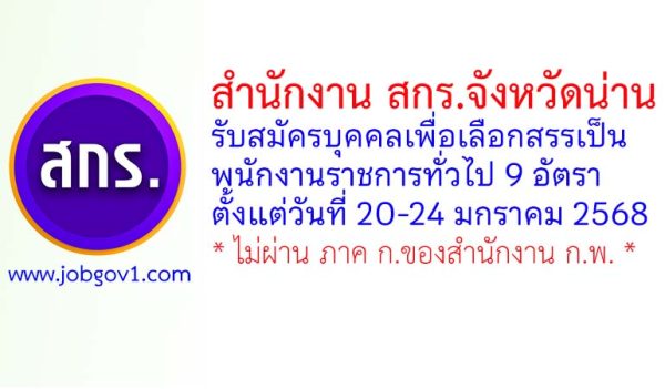 สำนักงาน สกร.ประจำจังหวัดน่าน รับสมัครบุคคลเพื่อเลือกสรรเป็นพนักงานราชการทั่วไป 5 อัตรา ตั้งแต่วันที่ 1-10 เมษายน 2568