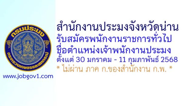 สำนักงานประมงจังหวัดน่าน รับสมัครพนักงานราชการทั่วไป ตำแหน่งเจ้าพนักงานประมง ตั้งแต่ 30 มกราคม – 11 กุมภาพันธ์ 2568