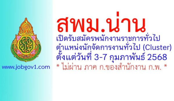 สพม.น่าน รับสมัครพนักงานราชการทั่วไป ตำแหน่งนักจัดการงานทั่วไป (Cluster) ตั้งแต่วันที่ 3-7 กุมภาพันธ์ 2568
