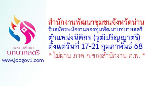 สำนักงานพัฒนาชุมชนจังหวัดน่าน รับสมัครพนักงานกองทุนพัฒนาบทบาทสตรี ตำแหน่งนิติกร ตั้งแต่วันที่ 17-21 กุมภาพันธ์ 2568
