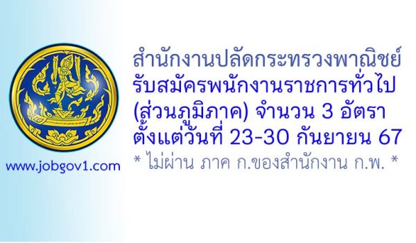 สำนักงานปลัดกระทรวงพาณิชย์ รับสมัครบุคคลเพื่อเลือกสรรเป็นพนักงานราชการทั่วไป 3 อัตรา ตั้งแต่วันที่ 23-30 กันยายน 2567