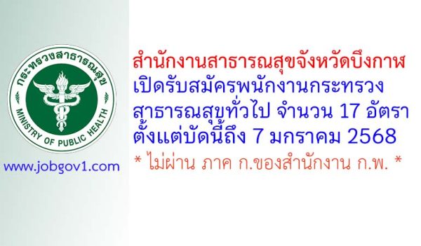 สำนักงานสาธารณสุขจังหวัดบึงกาฬ รับสมัครพนักงานกระทรวงสาธารณสุขทั่วไป 17 อัตรา ตั้งแต่บัดนี้ถึง 7 มกราคม 2568