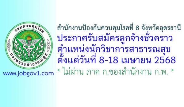สำนักงานป้องกันควบคุมโรคที่ 8 จังหวัดอุดรธานี รับสมัครลูกจ้างชั่วคราว ตำแหน่งนักวิชาการสาธารณสุข ตั้งแต่วันที่ 8-18 เมษายน 2568