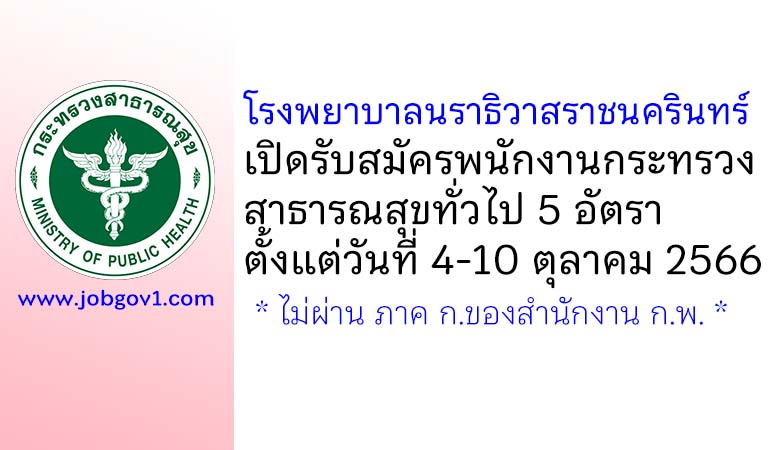 โรงพยาบาลนราธิวาสราชนครินทร์ รับสมัครพนักงานกระทรวงสาธารณสุขทั่วไป 2 อัตรา ตั้งแต่วันที่ 1-8 เมษายน 2568