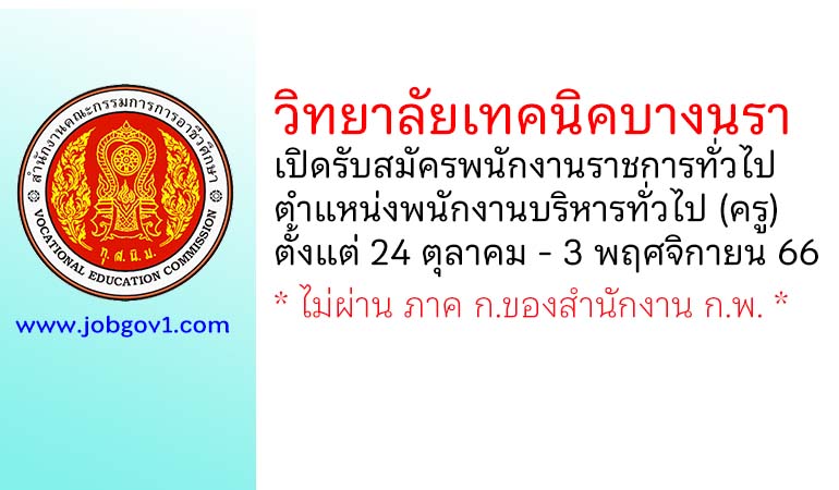 วิทยาลัยเทคนิคบางนรา รับสมัครบุคคลเพื่อเลือกสรรเป็นพนักงานราชการทั่วไป 2 อัตรา