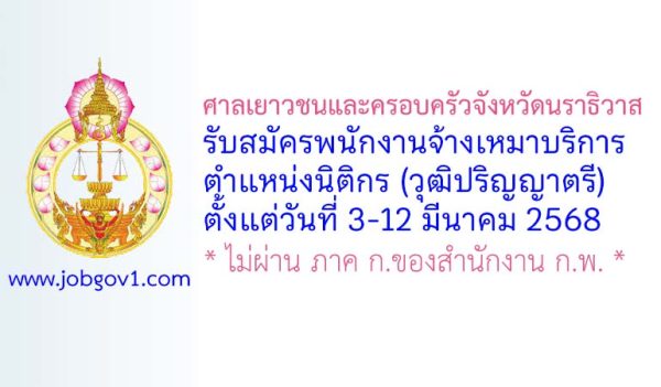 ศาลเยาวชนและครอบครัวจังหวัดนราธิวาส รับสมัครพนักงานจ้างเหมาบริการ ตำแหน่งนิติกร 2 อัตรา