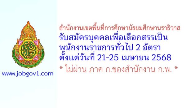 สำนักงานเขตพื้นที่การศึกษามัธยมศึกษานราธิวาส รับสมัครบุคคลเพื่อเลือกสรรเป็นพนักงานราชการทั่วไป 2 อัตรา ตั้งแต่วันที่ 21-25 เมษายน 2568