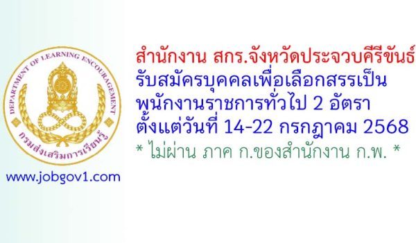 สำนักงาน สกร.จังหวัดประจวบคีรีขันธ์ รับสมัครบุคคลเพื่อเลือกสรรเป็นพนักงานราชการทั่วไป 2 อัตรา ตั้งแต่วันที่ 14-22 กรกฎาคม 2568